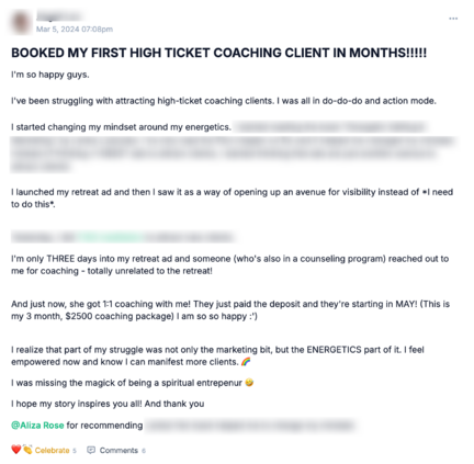 → Hundreds of brilliant coaches and entrepreneurs who discovered both their premium market AND the ease they'd been seeking!