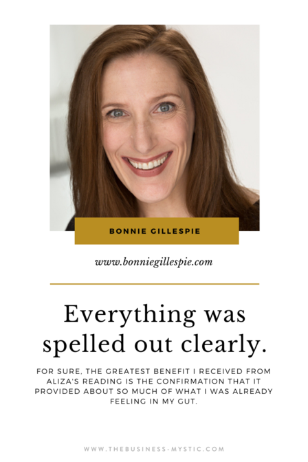 “After my reading from Aliza, I feel incredibly empowered, clear and confident about the future of my business.