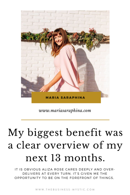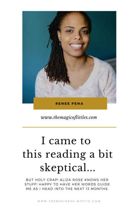 I am looking forward to the next 13 months with a bit of curiosity and awe, and happy to have her words guide me as I head into the next 13 months in my business.”