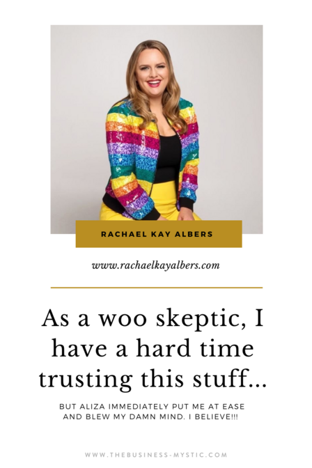 As a woo skeptic, I have a hard time trusting folks in this [woo] world, and Aliza puts me immediately at ease and blows my damn mind.